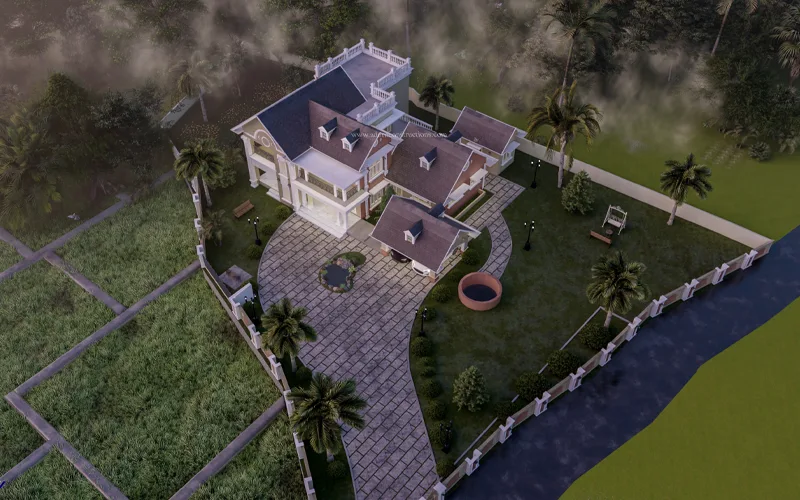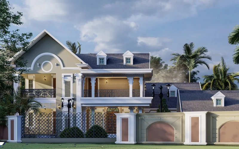 columns and compound walls, paying homage to the grandeur of Victorian architecture. The unique feature of this design lies not just in its adherence to Victorian aesthetics but in its deliberate departure from the surrounding context, elevating the structure to seemingly tower over a vast expanse of greenery.