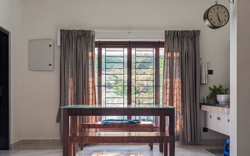 the gentle rustle of leaves and the soothing sounds of water, residents find solace and rejuvenation. The minimalist aesthetic of Deepak Residence perfectly complements its natural surroundings, creating a harmonious blend of modern sophistication and timeless elegance. Every detail has been meticulously curated to enhance the sense of serenity, from the clean lines of the architecture to the thoughtful placement of windows that frame picturesque views of the surrounding landscape.